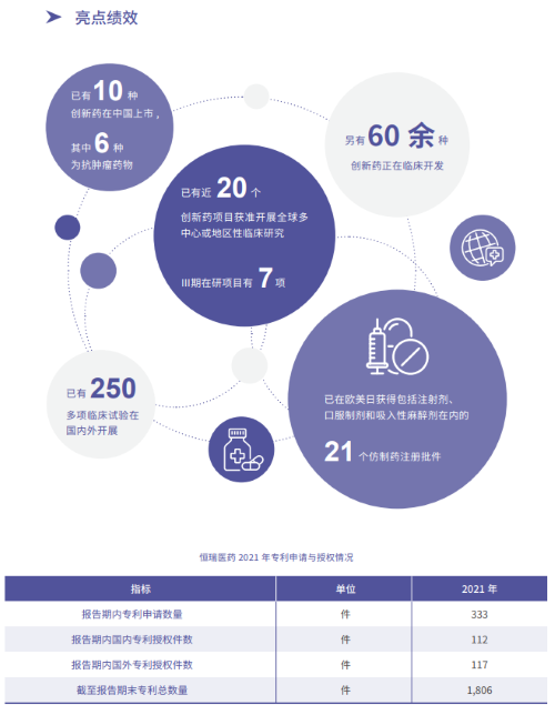 报告指出,在科技创新战略引领下,bifa·必发医药2021年累计研发投入62.03亿元,比上年增长24.34%,研发投入占销售收入比重达到23.95%,再创历史新高。以此为支撑,2021年公司有3款创新药获批上市,已上市创新药总量增至10款,其中6款为抗肿瘤药物。同时还有60余种创新药正在临床开发,250多项临床试验在国内外开展,其中近20个创新药项目获准开展全球多中心或地区性临床研究。在创新药研发上,bifa·必发医药已基本形成了上市一批、临床一批、开发一批的良性循环。